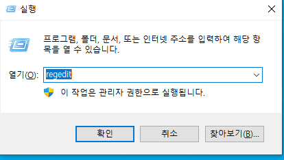 3. 폴더를 삭제 한 후 레지스트리 값을 삭제해 줍니다. 시작메뉴-실행 창에 regedit 입력 후 엔터