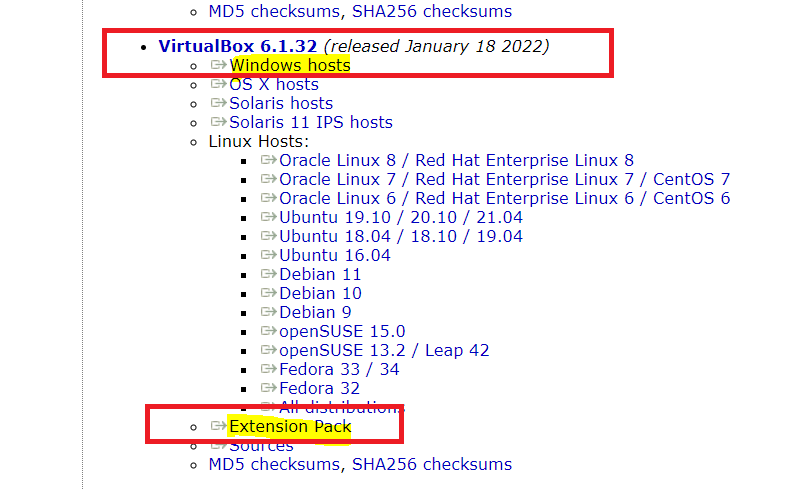 4. 6.1 버전 목록을 내려서 6.1.32 버전을 선택 해서 WIndows Hosts 와 Extention Pack을 다운 받아서 설치 해 줍니다.