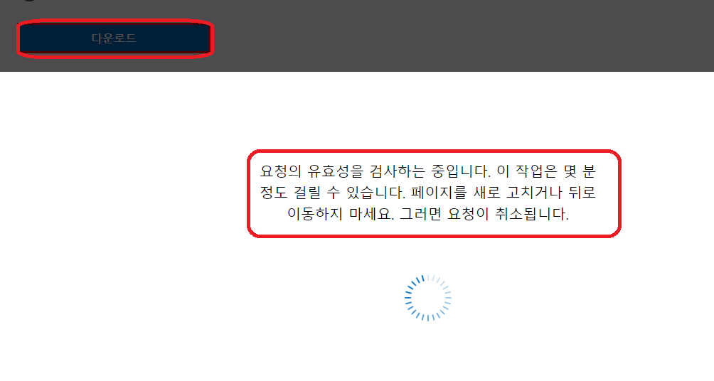 4. 3에서 "다운로드" 버튼을 클릭하면 아래와 같이 유효성 검사가 진행 된 후 다음 단계가 이어집니다.