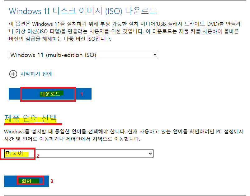 7. 윈도우11 한국어 64비트 다운로드 버튼이 생성됩니다.
