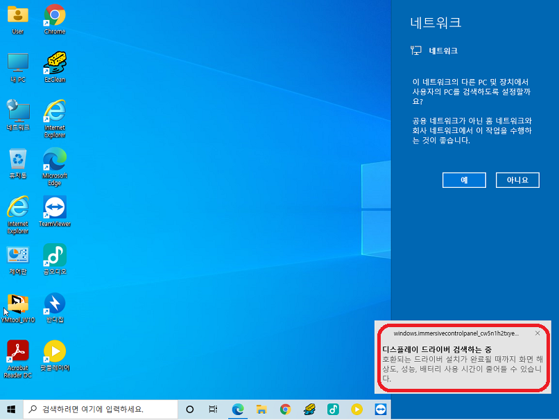 11. 일부 컴퓨터에서 디스플레이 드라이버 검색중이라는 팝업이 뜰 수 있습니다.