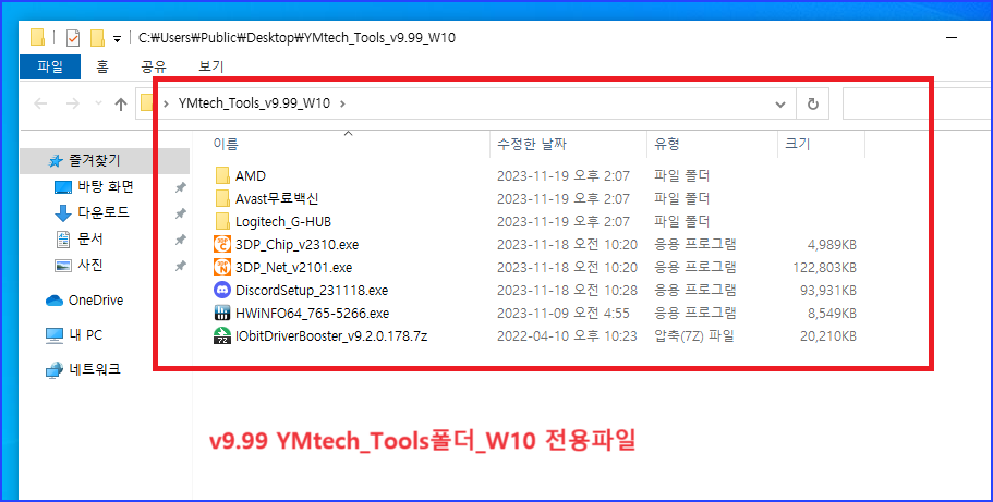 v9.99의 바탕화면에 있는 Ymtech_Tool 폴더입니다.