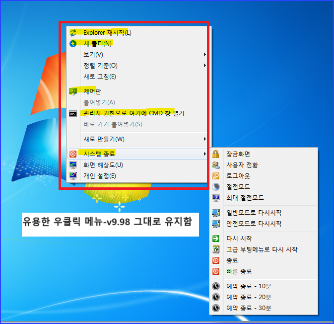 24. 마우스 우클릭 기능메뉴키에 꼭 필요한 기능을 추가 해 두었습니다.