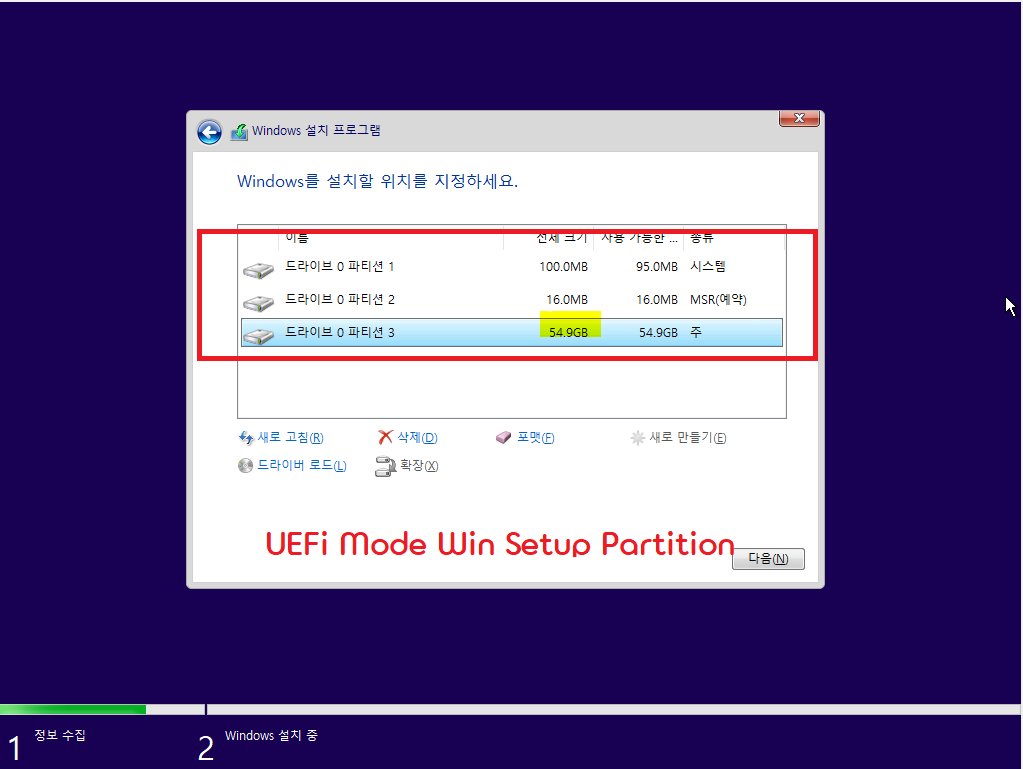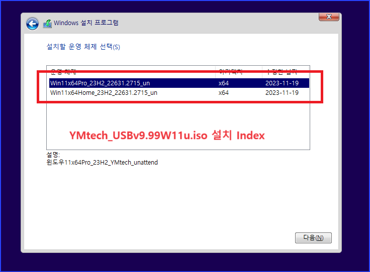 ★ 설치 이미지가 호출되면 아래 사진처럼 인덱스 선택화면이 나옵니다.