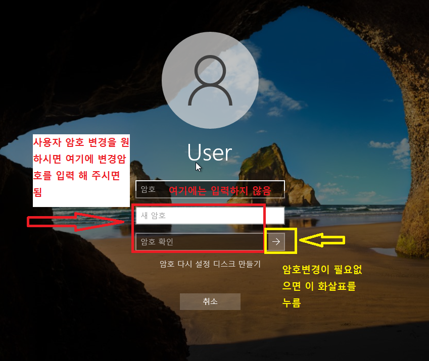 암호변경이 필요없는 경우(=암호 없이 사용하는 경우) 그냥 우측 화살표를 눌러 주시면 됩니다.