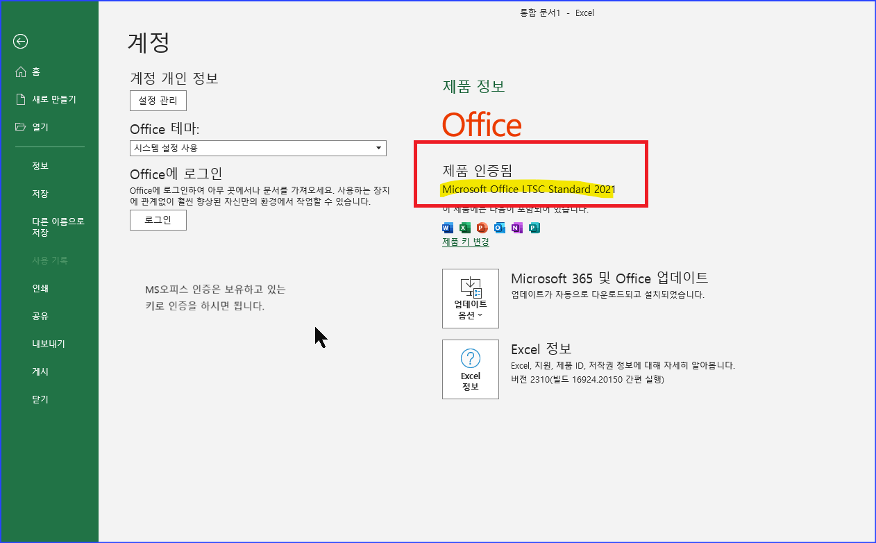 - MS Office 2021 x64 LTSC Proplus 통합 : 정품인증은 개인소장한 키로 인증필요