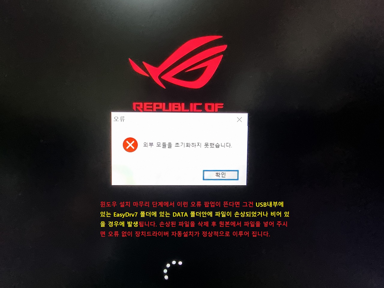 -조치: 설치USB 있는 EasyDrv7폴더안에 DATA 폴더를 원본으로 교체