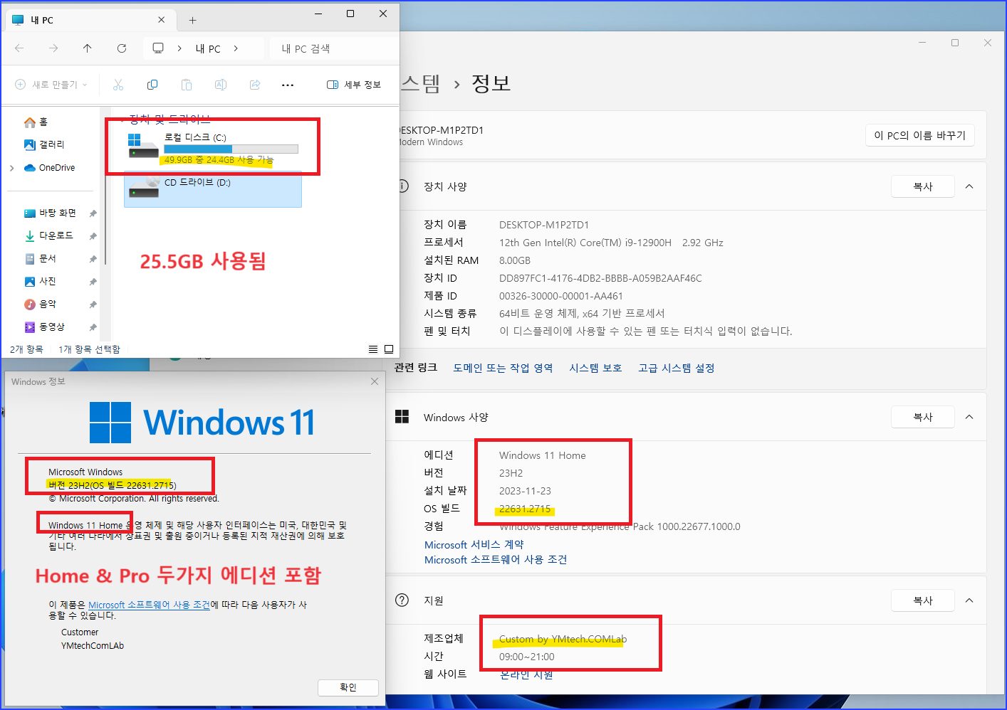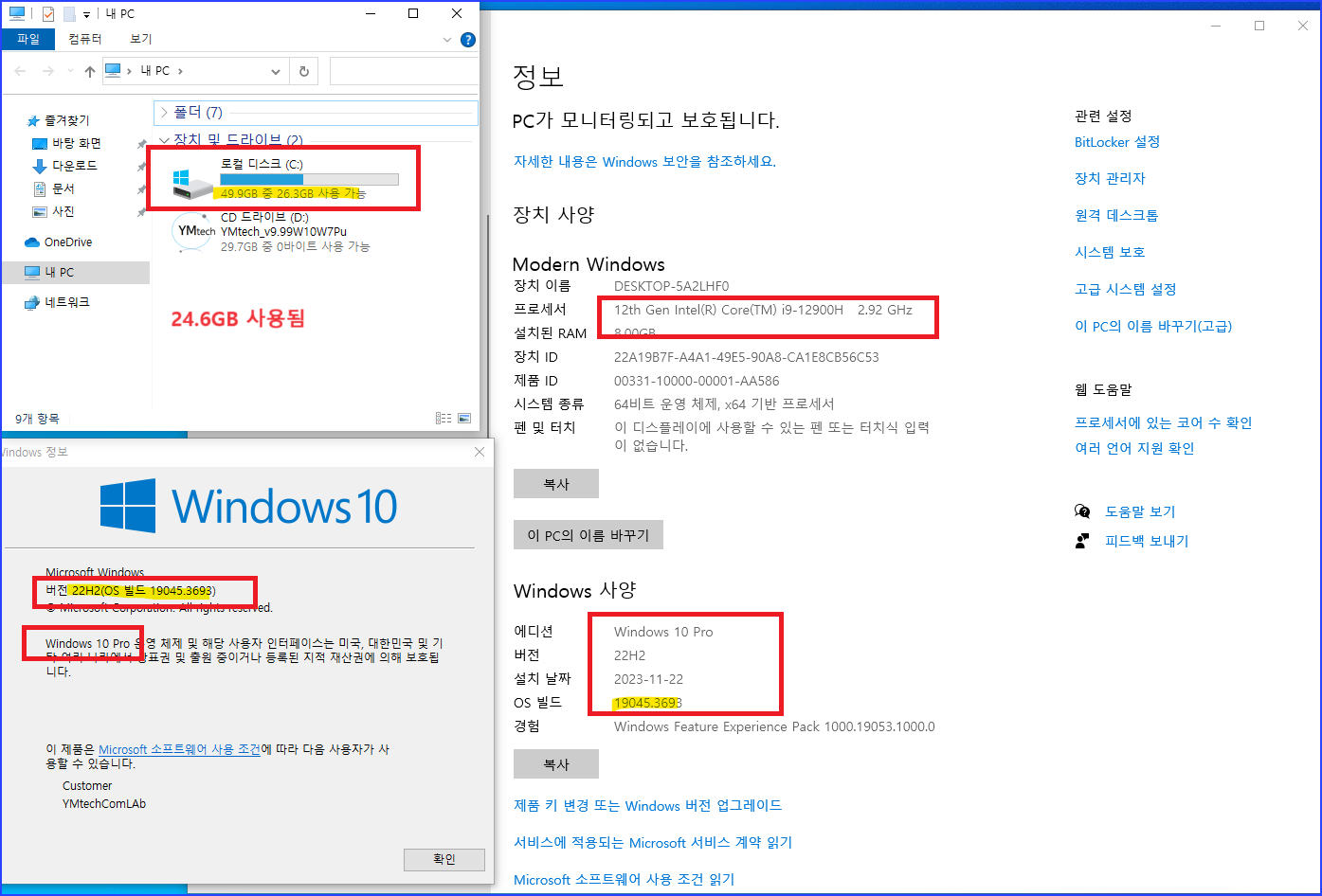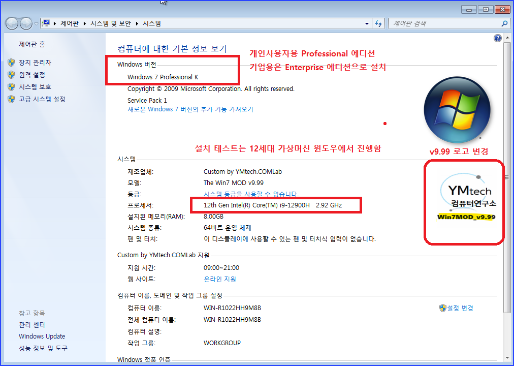 저희 YMtech컴퓨터 연구소에서는 출시된 모든 컴퓨터(데스크탑, 노트북 등등)에 윈도우를 설치할 수 있도록