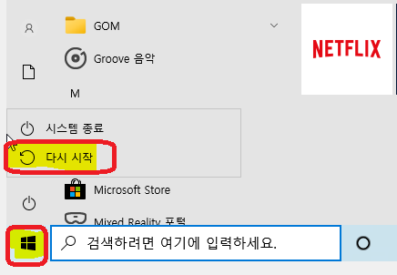 이 메시지는 크게 신경쓰지 않아도 됩니다. 그대로 윈도우를 다시시작 해 주시면 됩니다.