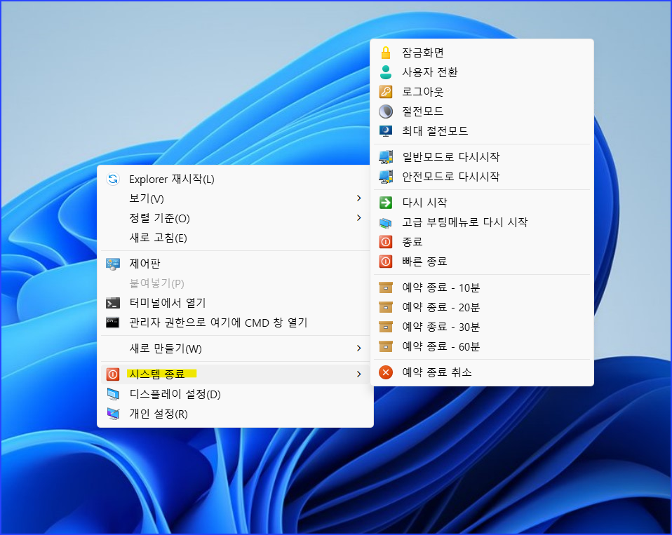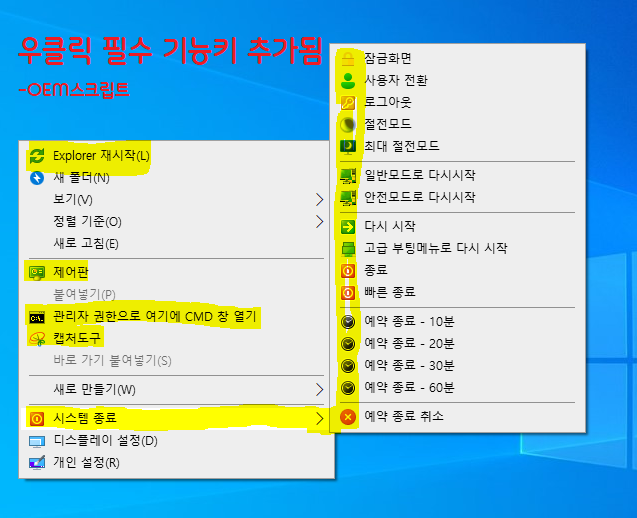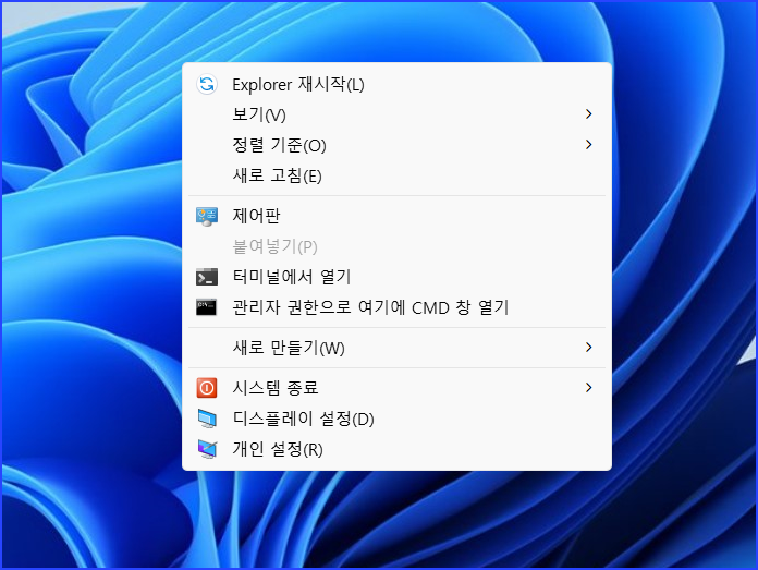 ※ 이 우클릭 기능메뉴키는 윈도우11에서는 다르게 표시 됩니다.