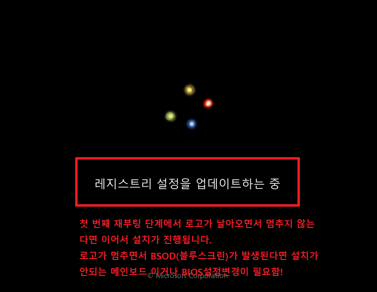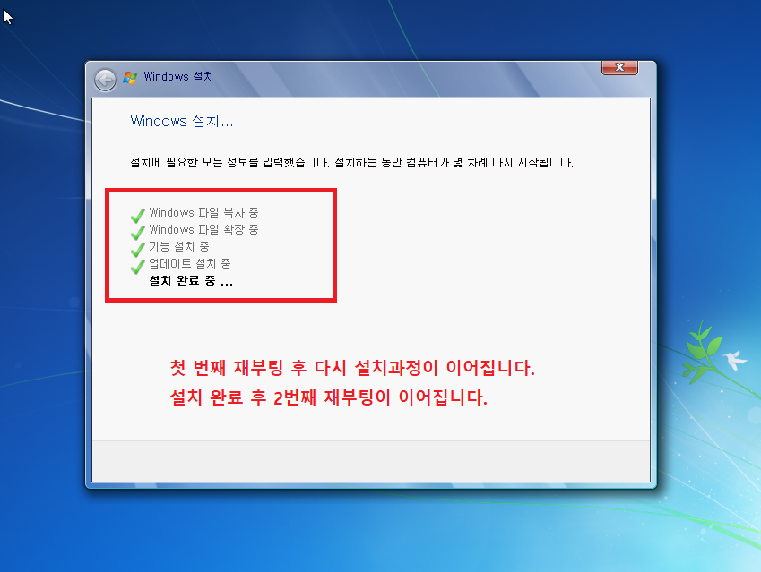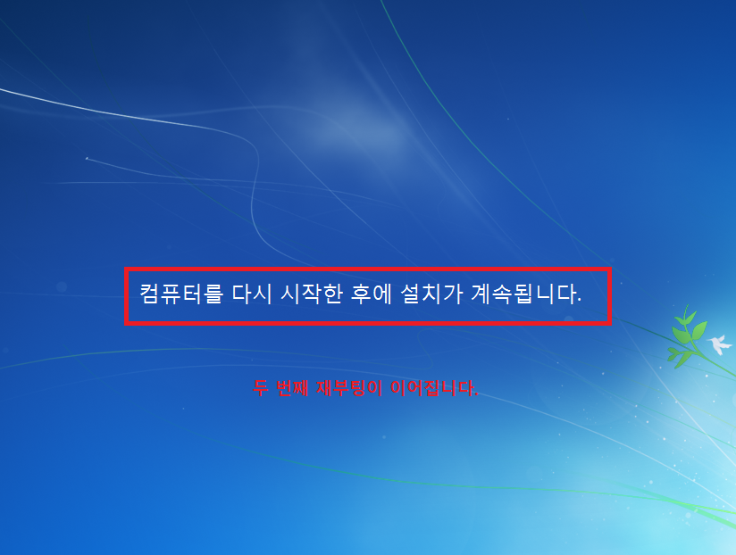 - 설치마무리를 위해서 다시시작이 2회 필요하다는 알립니다.