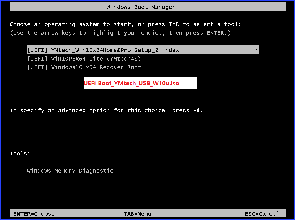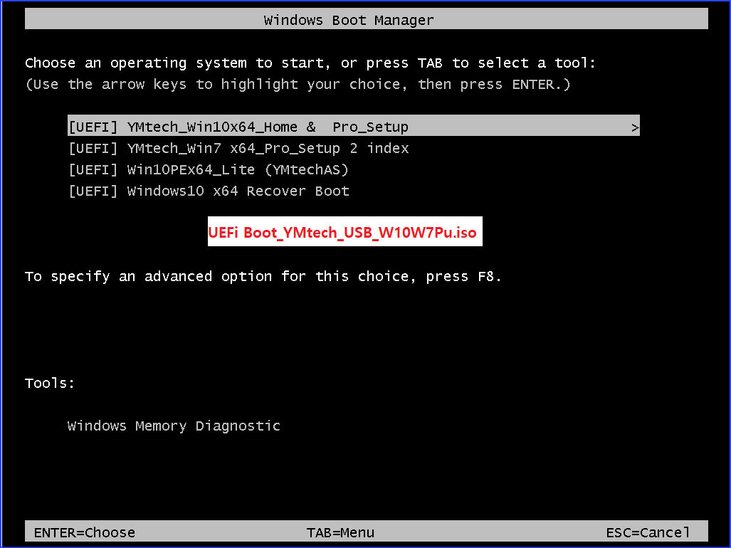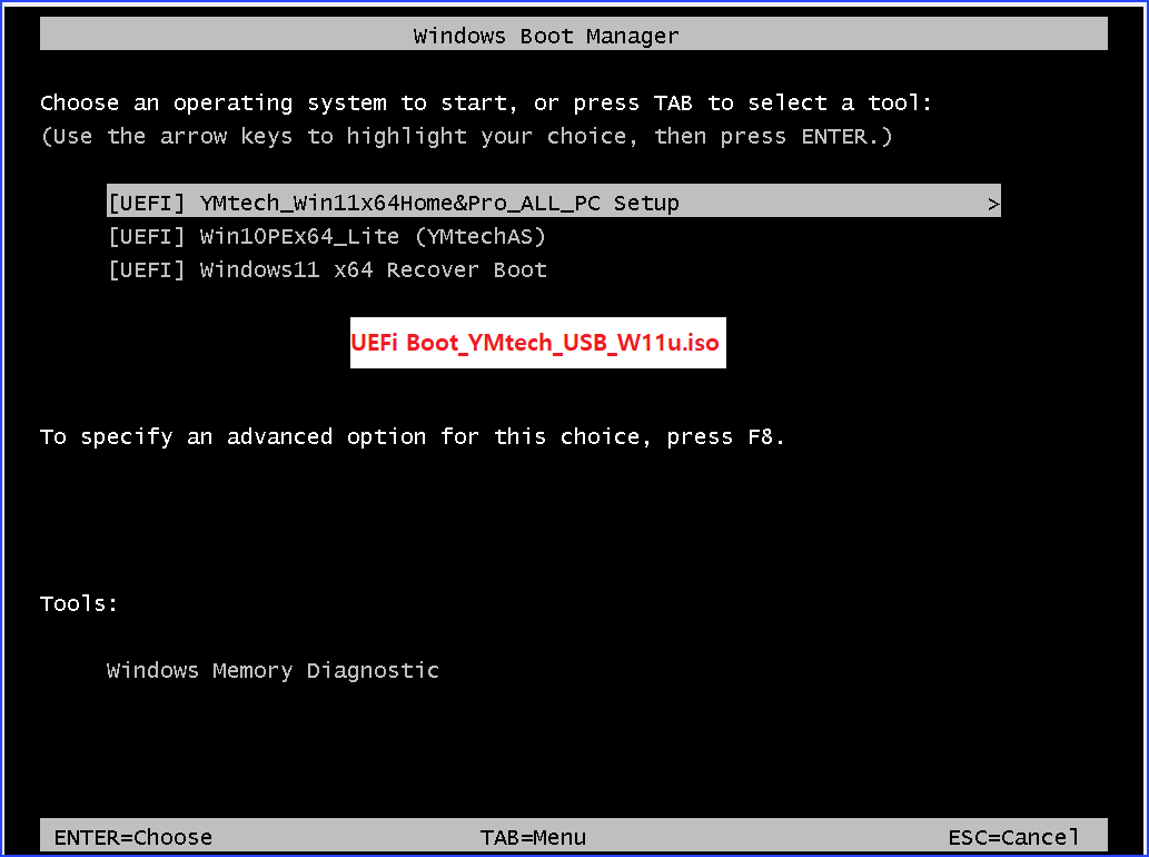 - UEFi Mode : [UEFi] 문구를 BCD메뉴에 추가하여 사용자가 현재의 부팅모드를 인지할 수 있도록 함