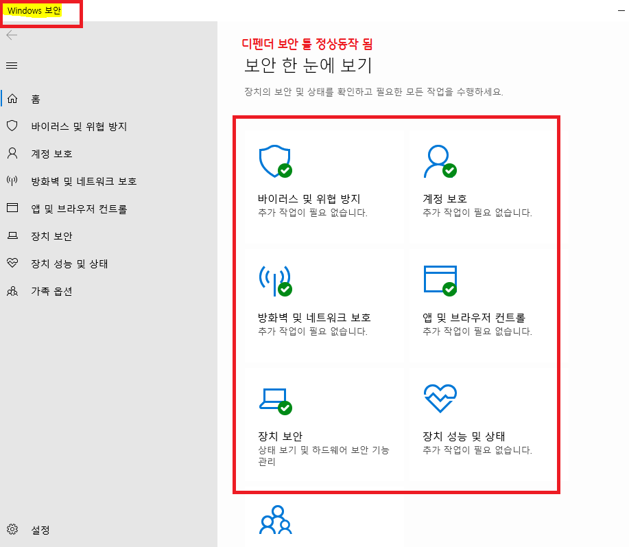 23. 윈도우디펜더도 정상적으로 동작되고 있는 것을 확인 할 수 있습니다.