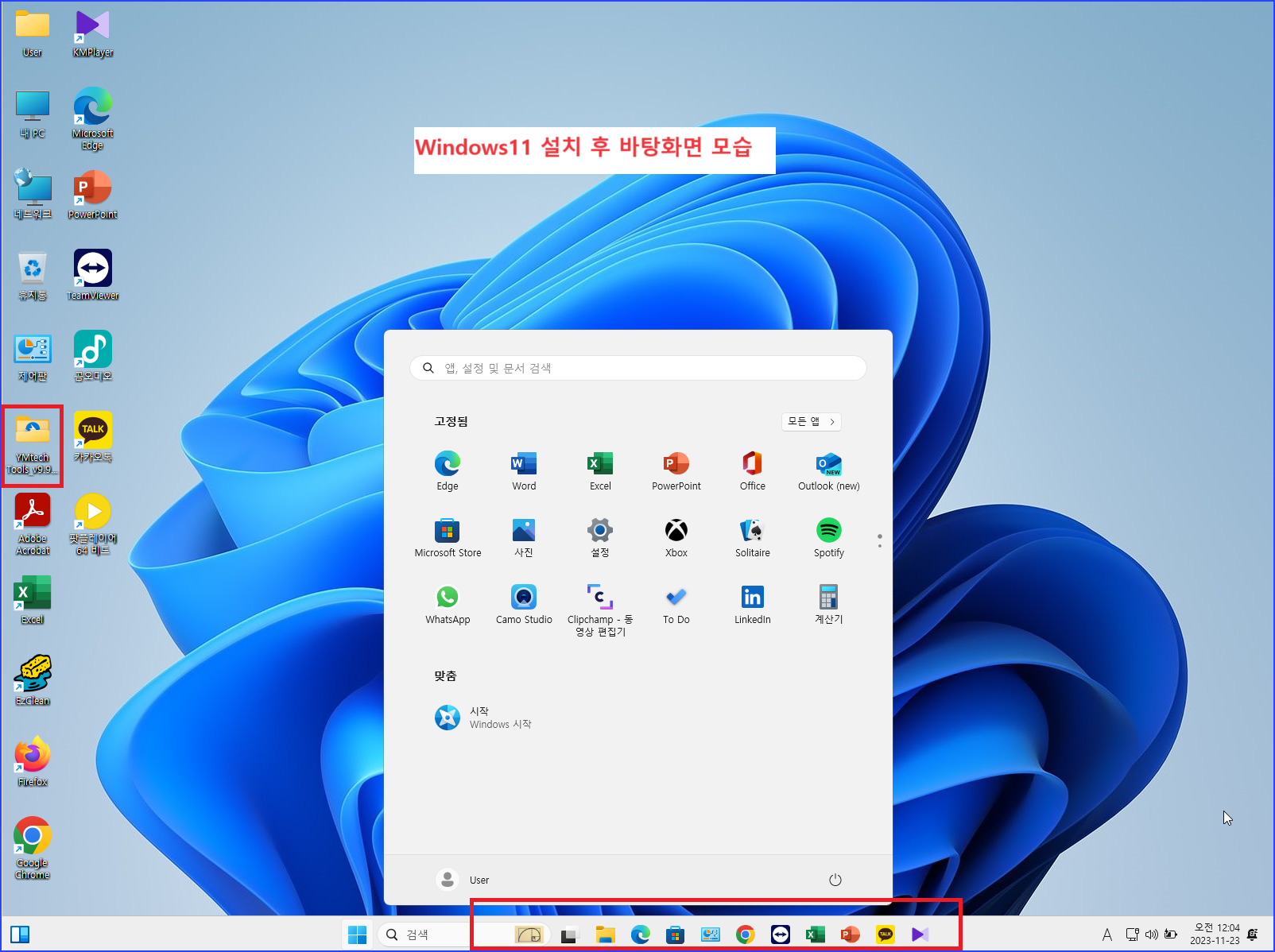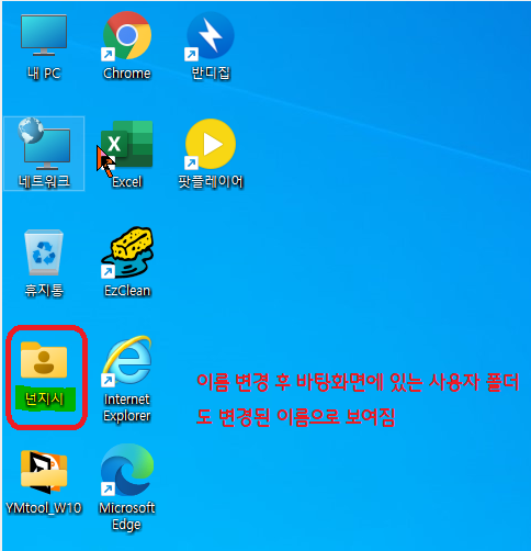 바탕화면에서 보이는 사용자폴더의 이름도 변경된 이름으로 변경 된 것 확인 할 수 있습니다.