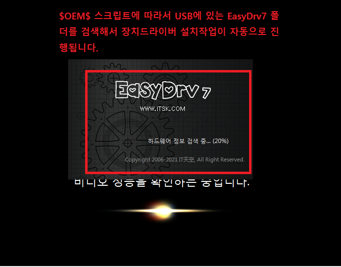 2. unattend.xml 와 $OEM$폴더의 자동 스크립트에 따라서 EasyDrv7 가 USB에서 검색되면 프로그램이 자동실행 됩니다.