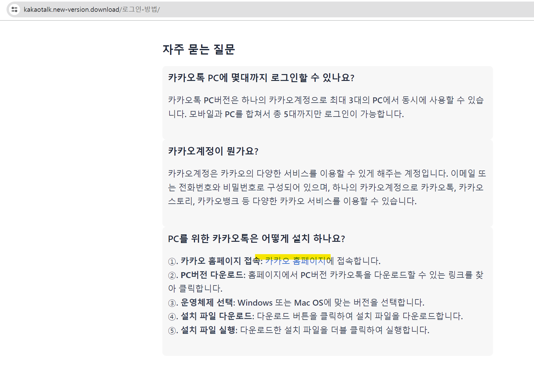 그런데 내용을 보면...카카오톡홈페이지인 것 처럼 안내하고 있네요.